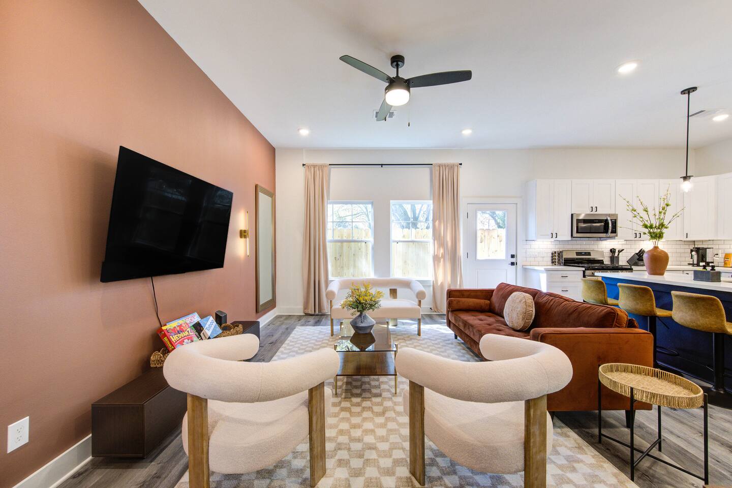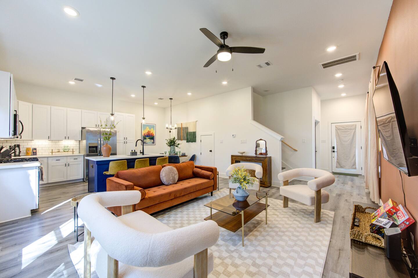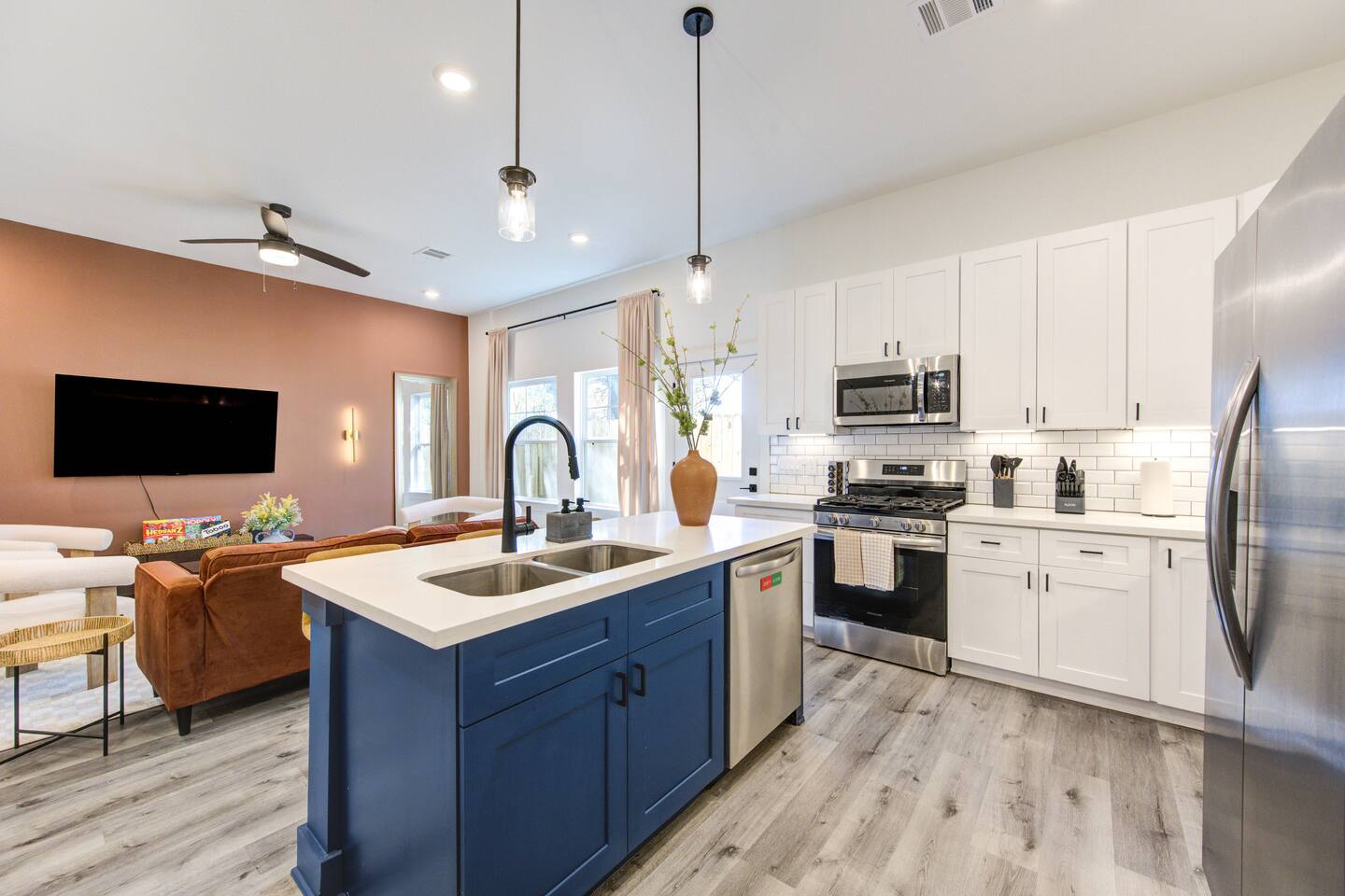 Spacious and fully furnished, this 1,800 sq. ft. home offers comfort and convenience for families and groups. It features a two-car garage, 2.5 bathrooms, a washer and dryer, and smart TVs in every room. With two queen beds, one king bed, and a baby crib, itβs perfect for a restful stay. Enjoy all the comforts of home in a clean, family-friendly environment.