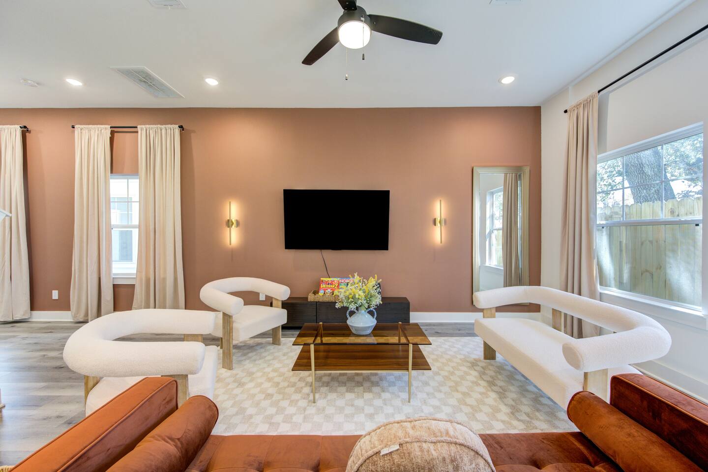 Guests will first use a gate code to enter the community, and a gate fob is provided inside the home for added convenience during your stay. Entry to the house is simple with a smart lock keypad, making self-check-in a breeze. For emergencies, a backup lockbox with a key is also available.